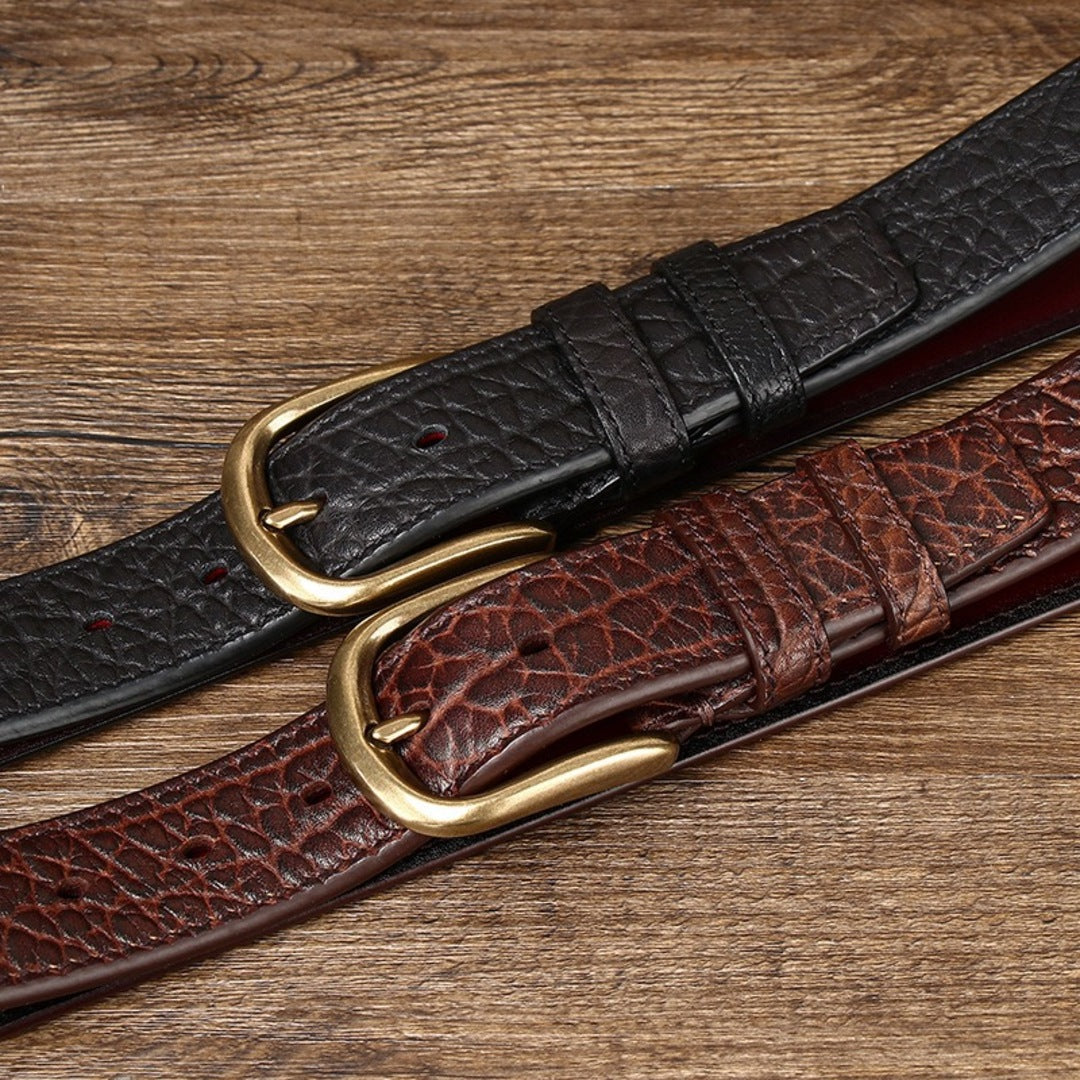 A premium double-sided leather belt made from thickened top-layer cowhide, built for durability and a clean everyday look.